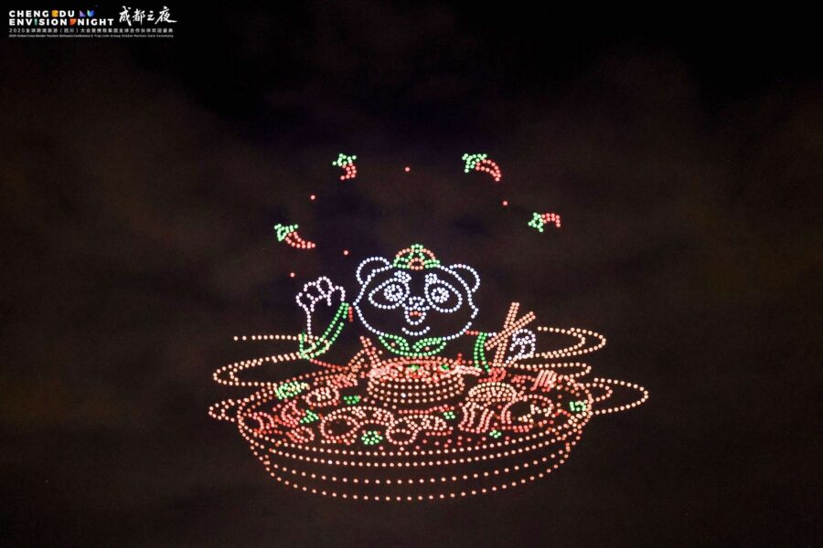 Gekrönt wurde das Festival von einer atemberaubenden Drohnenshow: Hunderte leuchtende Punkte zeichneten am Himmel die Geschichte Chengdus nach – untermalt von Musik und traditionellen Tänzen.