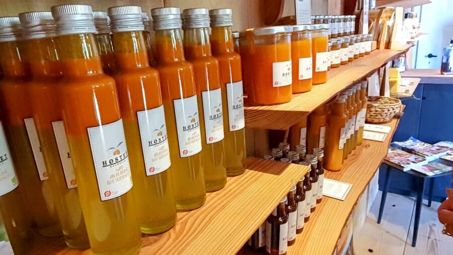 Das Sortiment umfasst Marmelade, Saft, Sirup, Sanddornkernöl für Hautpflege, Tee aus Sanddornblättern sowie in Kooperation hergestellte Produkte wie Sanddornbier, Wasserkefir, Schnaps und Seife.