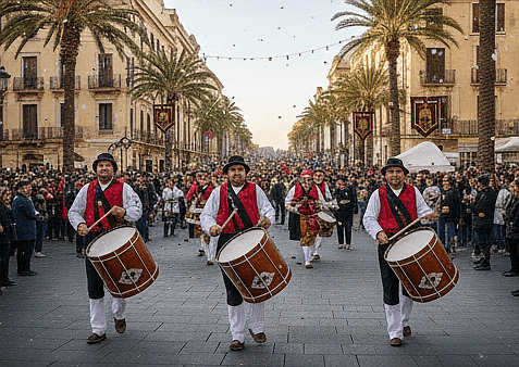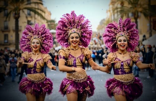 Die ikonische Rambla de Méndez Núñez, mit ihren Palmen und Mosaikfliesen, dient als Hauptachse für den Karneval – hier flanieren Menschen aus aller Welt, shoppen in Boutiquen oder genießen Paella und Sangria an Straßencafés.